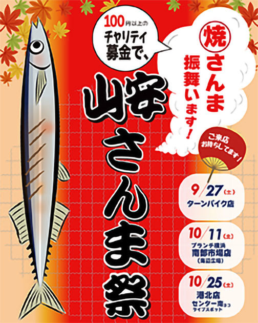 さんま2000尾・募金額232,866円山安港北店前 センター南駅横ライブスポット